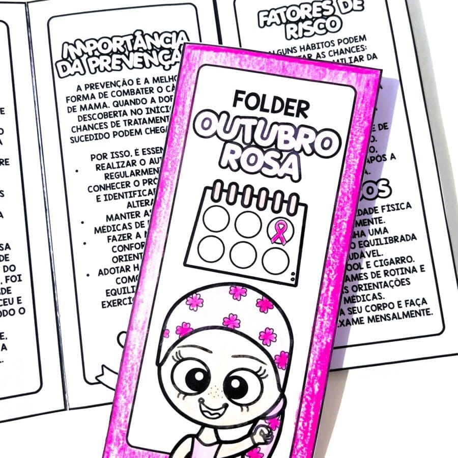 O Folder Informativo Outubro Rosa é um recurso educativo delicado e necessário, ideal para abordar com respeito e sensibilidade o tema da prevenção ao câncer de mama com as crianças. Criado com linguagem acessível e ilustrações envolventes, este material ajuda a introduzir valores como empatia, cuidado e solidariedade de maneira lúdica.