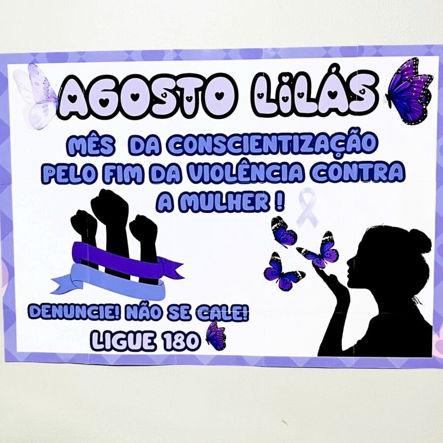 Traga consciência e informação para o seu espaço com o Painel Agosto Lilás, ideal para o mês de enfrentamento à violência contra a mulher.